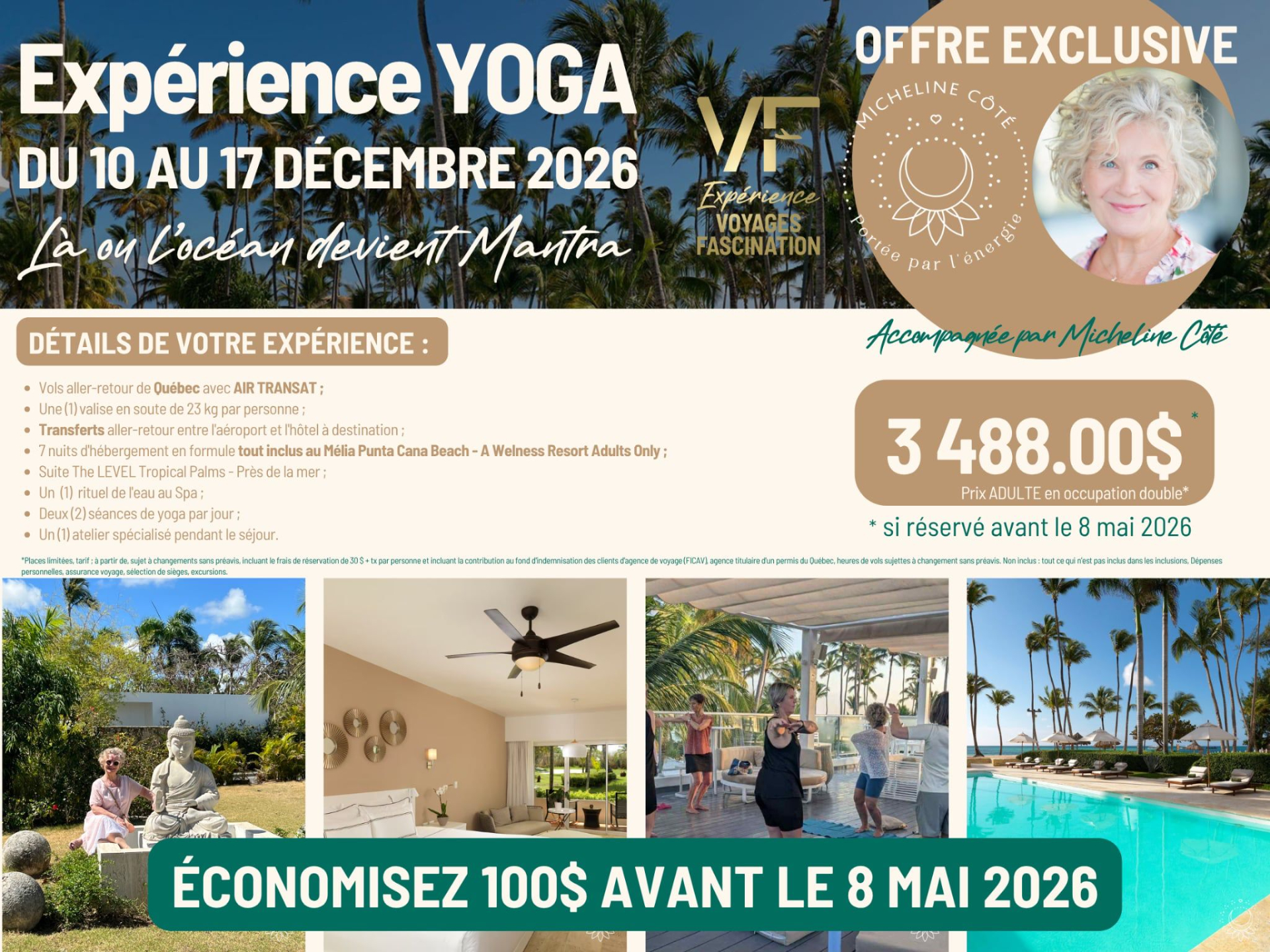 đș Accompagnement personnalisĂ© par Micheline CĂŽtĂ©, spĂ©cialiste en santĂ© mieux-ĂȘtre depuis plus de 30 ans et conseillĂšre en voyages certifiĂ©e depuis 5 ans